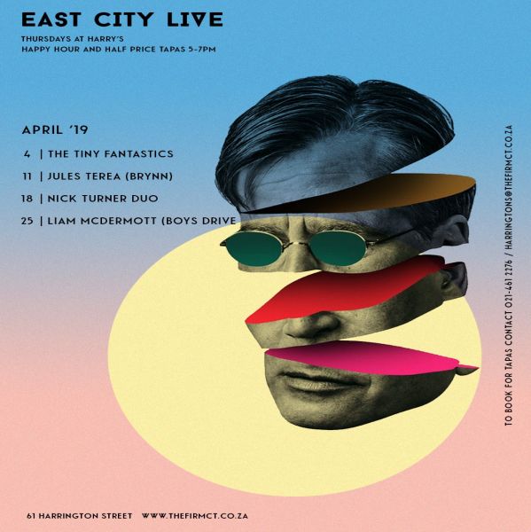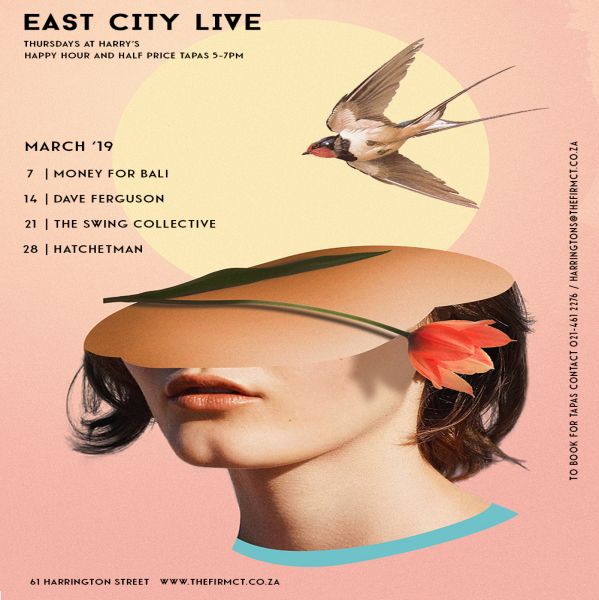 East City Live is a weekly treat in the centre of the Cape Town music scene, showcasing a selection of talented and extraordinary musicians. In the months of March and April, music lovers can look forward to a phenomenal line-up including, Money for Bali, Dave Ferguson, The Swing Collective, Hatchetman duo, The Tiny Fantastics, Jules Terea, Nick Turner duo and Liam McDermott.