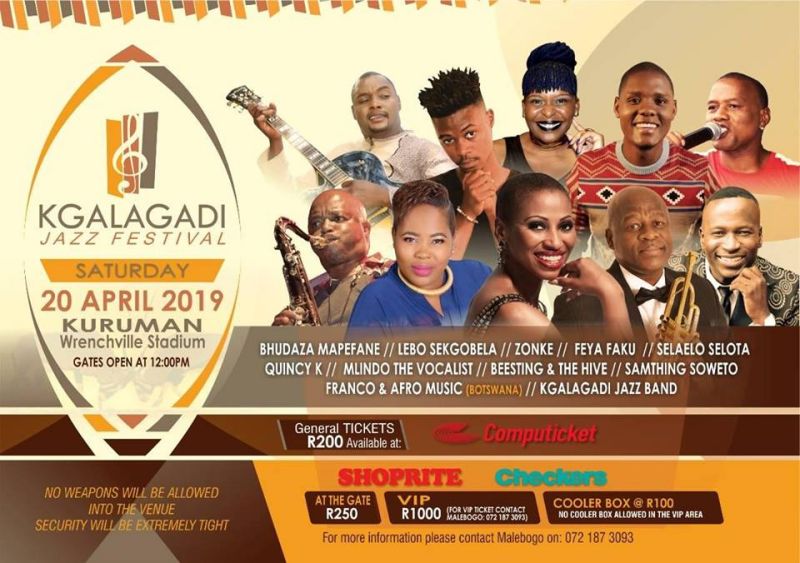 Kgalagadi Jazz Festival hosts the 4th instalment of a great musical experience this Easter in the “The Oasis of the Kalahari” Kuruman, on the 20th of April 2019.
