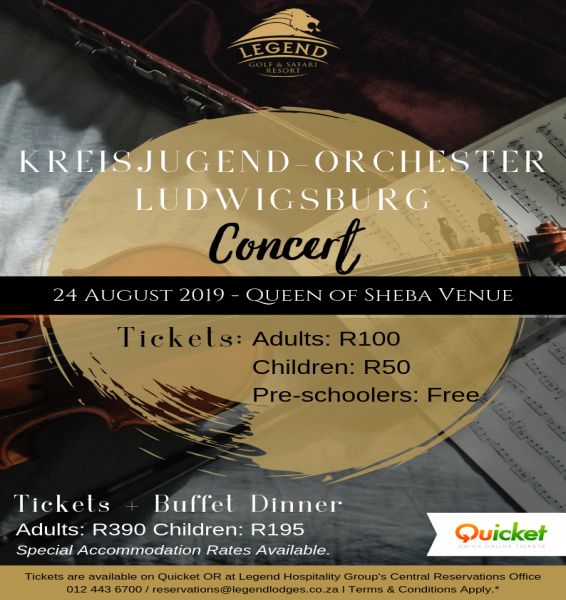 A world class orchestra performance is set to take place at Legend Golf & Safari Resort on Saturday, the 24th of August. The internationally acclaimed Kreisjugend-Orchester (KJO) Ludwigsburg from Germany will be taking to the stage to charm the crowd with popular sonatas and suites from famous composers & musicians.