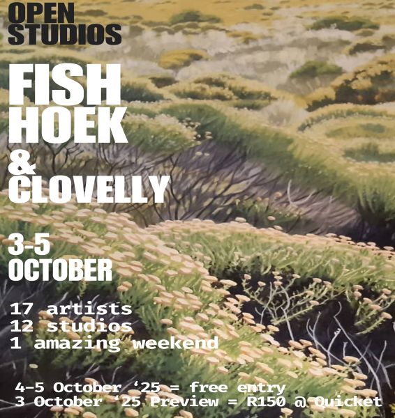 The event is free, and guests can visit as many studios and come back as many times as they want from Saturday 4 October to Sunday 5 October. There are four different studio routes to choose from, covering Clovelly, Fish Hoek Valley, Fish Hoek Mountainside and Risi View.