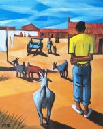 Despite being born in different corners of the world, Clarke and Hodgins shared a deep connection. Both artists were born in the 1920s and died in the 2010s. These two historical figures were not only painters but also printmakers, writers, and educators. Their artistic endeavors were marked by a meticulous approach in the studio, yielding a wealth of works that captivate with bold strokes and vivid colors. Through their canvases, they delved into the complexities of society, grappling with themes of power, and identity during the complex history of South Africa from the 1960s - 2010s. Their paintings serve as a testament to their shared commitment to unraveling the intricacies of the individual within the broader structures of power.