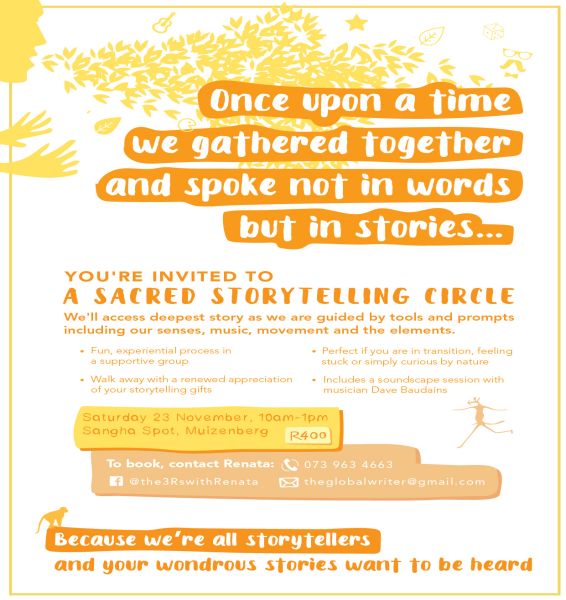 You are invited to a Sacred Storytelling Circle on Saturday, 23rd November 2019 at Sangha Spot in Muizenberg!
