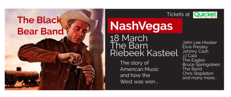 In the line-up will be music from John L Hooker, Elvis Presley, Johnny Cash, JJ Cale, The Eagles, Bruce Springsteen, Chris Stapleton, The Band and many more. Black Bear will perform a number of hit covers as well as original material influenced by these great artists and their music.