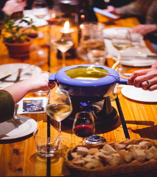 The hearty cheese fondues are served with relevant accoutrements and are popular not only for their flavours, but also as a way to beat the chills of cold Cape winter Sundays.