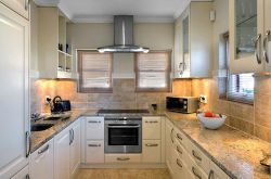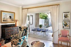 This duplex townhouse is bright and elegant with a spacious open plan lounge dining room and kitchen opening onto a beautiful garden with its own private swimming pool. This beautiful townhouse is the ideal choice for a memorable stay in Franschhoek. This is a Luxury Self-catering Apartment. The townhouse has two spacious en-suite bedrooms each with their own balconies, air-conditioning and heated towel rails. The master bedroom has a king size bed and the second bedroom two single beds, all extra length. Both bedrooms offer stunning views of the surrounding mountains.