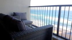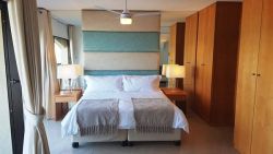 Off the lounge and main bedroom are sliding doors onto the patio with spectacular views of the sea. The sunrises are absolutely awesome. The kitchen consists of a fridge, microwave oven, under counter oven and a dishwasher. Please note that there is no washing machine or tumble dryer in this unit. Laundry facilities are available on the premises of The Bermudas block. The apartment has satellite TV (DSTV) on a large flat screen TV in the lounge as well as FREE high-speed Wi-Fi. The apartment is air-conditioned (heating and cooling) in the open plan lounge and dining area only. There are ceiling fans in the bedrooms. The apartment is serviced daily except on Sundays and public holidays. Secure parking is provided for your vehicle.