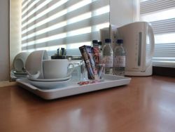 Each room has a television set and is also provided with a coffee and tea station. Our comfort rooms include additional amenities like bottled water, shampoo and other small comforts.