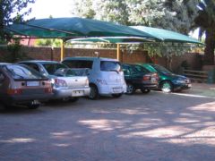 Front view of rooms. Secure, undercover parking. Braai available on left side of building. Each room has its own, separate entrance. Only 10 minutes drive from O R Tambo International Airport.