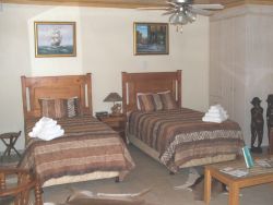 Five double rooms plus one family room, all en-suite. Downstairs are Business suites with double beds and full bathroom with a shower over the bath. Each room is spacious with a TV, small kitchenette comprising of bar fridge, microwave, kettle, toaster, cutlery, crockery, safe, hairdryer and wireless internet. Shaver plug in every bathroom. Upstairs are the Executive Suites which have all the same amenities as downstairs except for the shower which is separate from the bath and the rooms are more spacious.
