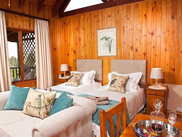 Set in the fynbos Gardens with glorious views, bird watching from each balcony is an added relaxation. If you would prefer to have a beautiful view to look at while enjoying your meal we provided two comfortable chairs and a table on all your balconies. The wooden cabin design gives a feel that you are truly somewhere in the Wilderness.