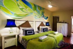Our 14 en suite rooms are individually styled and beautifully decorated with a distinct African touch and separately accessed via elevated timber walkways that meander through our distinctively Tropical Gardens. All have a private deck or terrace from which guests enjoy the prolific bird life including the shy Knysna Loerie!