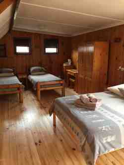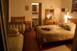 5 Sleeper UPSTAIRS room with an en-suite bathroom, please note - bathtub only and no full shower. Room consisits of double bed with a door for privacy between the double bed and 3 single beds. Hand shower only. Free wifi. Complimentary coffee and tea tray in room. Fan, no airconditioning. Electronic safe. Televisions in both rooms with open view decoder. Bath soap, linen and bath towels supplied. Bring only own pool and beach towels. Rooms are serviced daily.