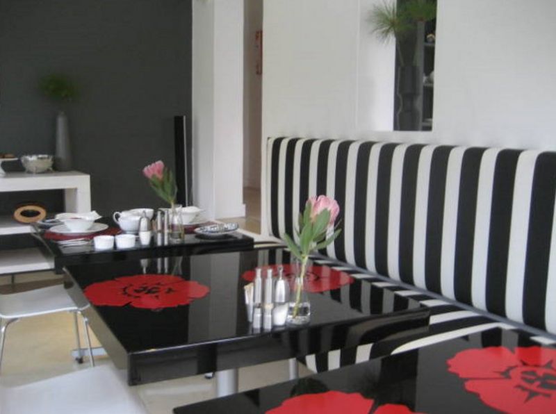 The two themes "Four Seasons" and "Three Elements" are the basic inspiration for the decoration of the luxury seven rooms. Four seasons: These four modern and fashionably decorated rooms are each inspired by a different season. Each makes a clear colour-and-season statement: fiber green, sun orange, purplish pink and Nordic blue. The Elements: Earth, Wind & Fire are the themes for the other three rooms. With chocolate brown, grayish blue or passionate red as their main color, they each have their own unique atmosphere. All rooms have a comfortable sitting area with TV, DVD, Ipod-docking station, wireless internet, bar facilities and luxurious bathroom with a bath and a separate shower. French doors open onto landscaped Gardens with a tranquil dam, heated saltwater pool, outside jacuzzi and mountain views. With a maximum of 14 guests privacy, attentive service and supreme comfort are assured.