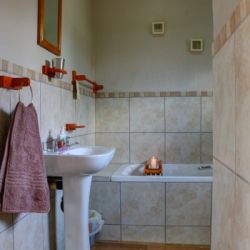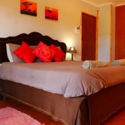 You can choose between three units. Two adjacent, but lovely private one-bedroom units (queen bed) with a shower (& bath), fully equipped kitchens and build-in braais on the patio. Both one-bedroom units are suitable for two people. Or the wooden log house with two bedrooms (queen/king bed and single bed in each room), two bathrooms with a spacious living room and an open-plan kitchen with adjacent scullery. The main bedroom has an en-suite bathroom and both rooms has spacious wardrobes. Sleeps maximum six people; four adults and two children. The units are safely surrounded by electrical fencing.