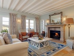 Honeymoon Castle: The romantic villa features 1 bedroom with an en-suite bathroom with his & hers showers and a separate bath; a fully equipped kitchen, 2 wood-burning fireplaces, and an open-plan living area. Terrace boasts a heated plunge pool and overlooks the garden.
