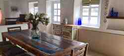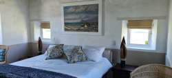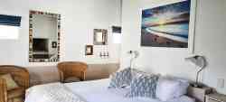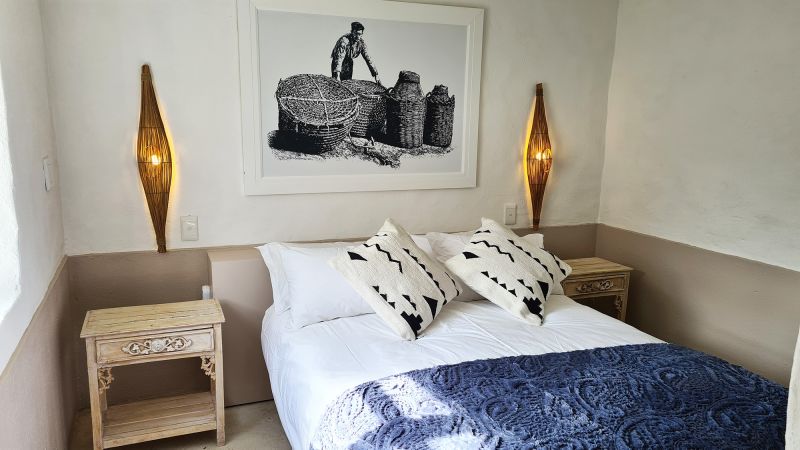 Casa Pescador, which means Fishermans House, offers self-catering accommodation in Struisbaai. The accommodation, situated only 1 minute walk away from one of South Africa’s most pristine beaches, sleeps 8 to 10 guests and comprises 4 bedrooms, 3 bathrooms, and an open-plan kitchen and living area. Attractions in the area include De Mond Nature Reserve, Agulhas National Park, Cape Agulhas Wine Route and Waenhuiskrans Cave. The main bedroom features a king-size bed and an en-suite bathroom with a bath and a shower. The second private bedroom has a Queen-size bed and an en-suite bathroom with a shower. The third bedroom, privately located in the loft has 2 three-quarter beds, its own TV and shares a bathroom with the second bedroom. The private cottage contains a king-size bed and an en-suite bathroom with a shower.
