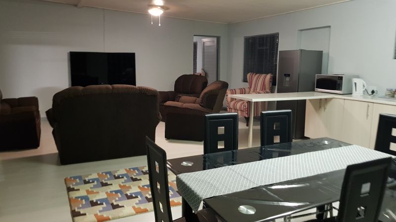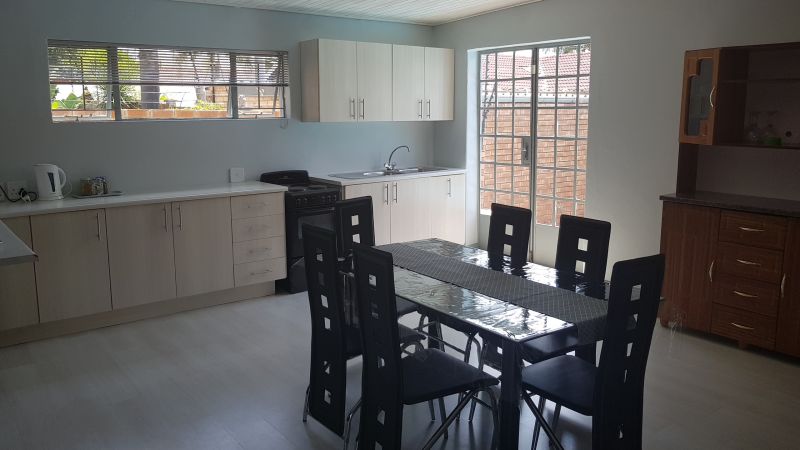The kitchen is fully equipped with a stove, oven, microwave and fridge-freezer. The dining area contains a 6-seater dining table and chairs. The lounge features an Android TV with full DStv channels, Netflix and Youtube. Free Wi-Fi is available. Your own private swimming pool, lapa and outdoor braai are available for your enjoyment. Secure parking with remote access is available.