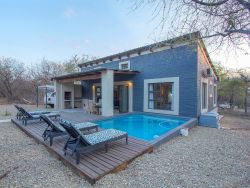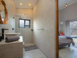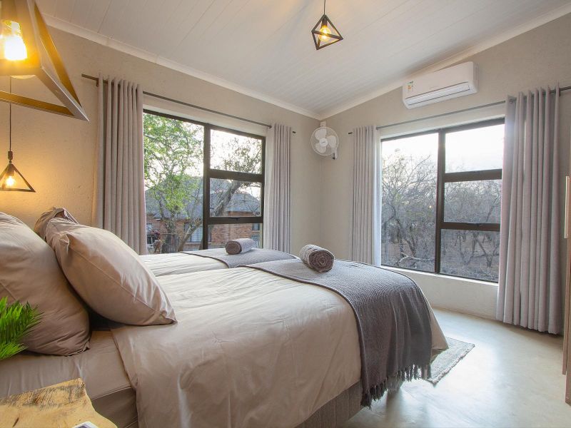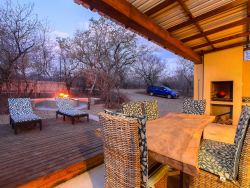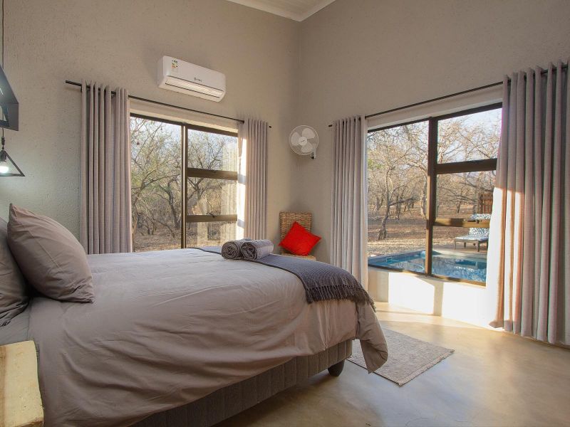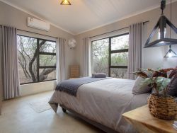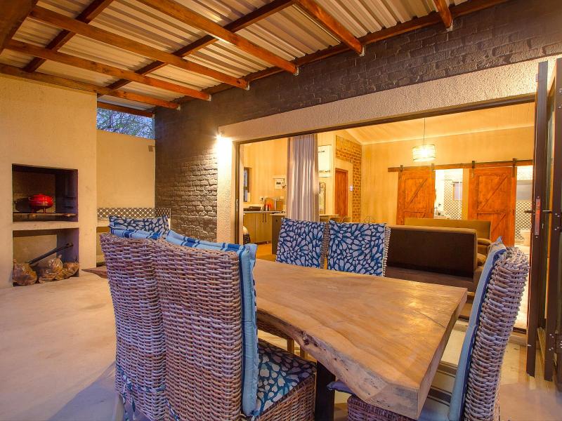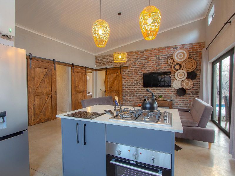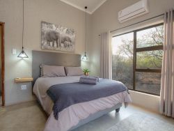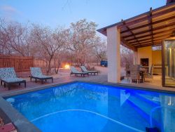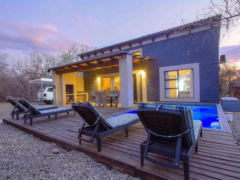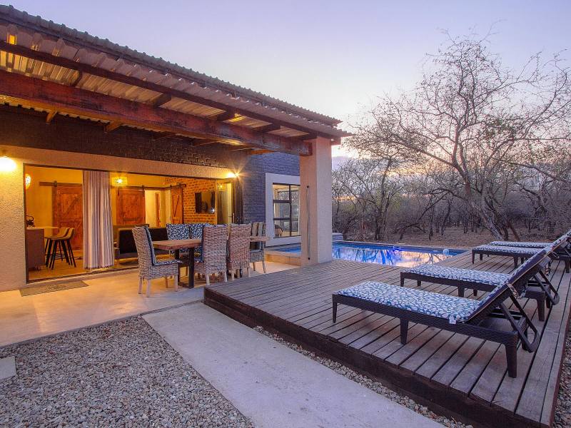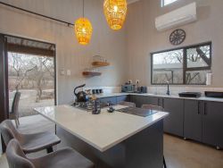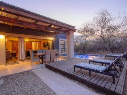 Nestled in the heart of Marloth Park, Chui House offers a refined Bushveld escape where comfort and nature dance in harmony. This spacious three-bedroom, three-bathroom retreat features individually en-suite rooms, air conditioning, and an open-plan living area that flows effortlessly into a covered terrace. Large glass doors frame sweeping views of the surrounding bush, and a private plunge pool and outdoor dining/braai area invite you to unwind while wildlife roams freely nearby. Inside, the fully equipped kitchen makes self-catering a pleasure, and modern amenities such as Wi-Fi and comfortable furnishings ensure your stay is effortless. Perfect for families or groups, or friends, Chui House sits just minutes from Kruger’s Crocodile Bridge Gate, placing you ideally for safari adventures while offering the peace of a secluded bush retreat.