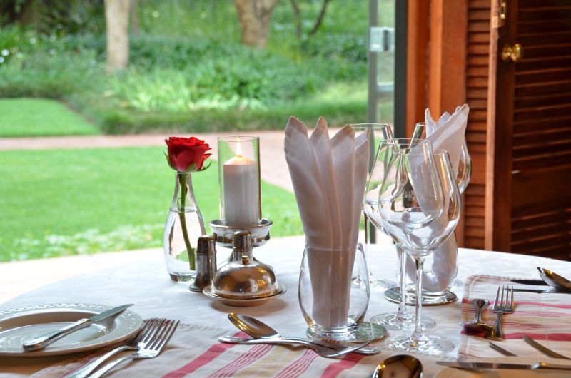 Twenty luxurious suites, superlative cuisine and acclaimed service blend seamlessly to create a classic, refined ambience that reflects a pampered sense of timelessness and privilege. Guests feel welcomed, relaxed and fulfilled. The hotel consists of the main house, which accommodates guests in the original executive rooms, and the north, south and west quarters accommodate guests in the superior suites, overlooking the Gardens along the river. The main hall is exceptional with wrap around gallery that leads to a well stocked library and the original executive rooms. Glass and steel-framed windows and doors give views of the lush Gardens from all angles of the hotel. The 16 superior suites have luxurious, extra-length, mahogany, 4-poster beds, French empire beds and sleigh beds, crisp 100% cotton percale bed linen and down duvets. Four of the superior suites have fireplaces. All rooms are en-suite with double marble vanity basins, large oval bath tubs and showers. The superior rooms are equipped with under carpet and tile heating, air-conditioning, room safes, satellite TV and DVD players, mini-bar fridges, hairdryers and telephones. The executive rooms in the main house have bathrooms en-suite, hairdryers, telephones and TV. De Hoek caters for companies who wish to entertain and celebrate with clients or friends, in fact a celebration of any kind can be hosted at De Hoek. Weddings, dinners & dances, corporate events, Sunday lunches, birthdays, honeymoons and idyllic getaways are all enjoyed in this exclusive setting.