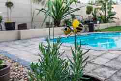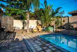 The establishment has a lounge/dining room, indoor and outdoor braai facilities and all the rooms have sliding doors leading onto a picturesque garden and sparkling swimming pool.
