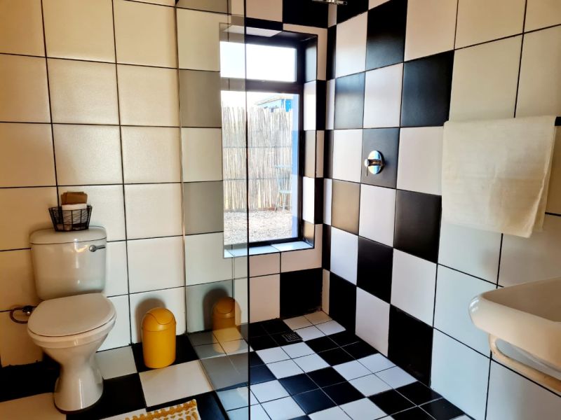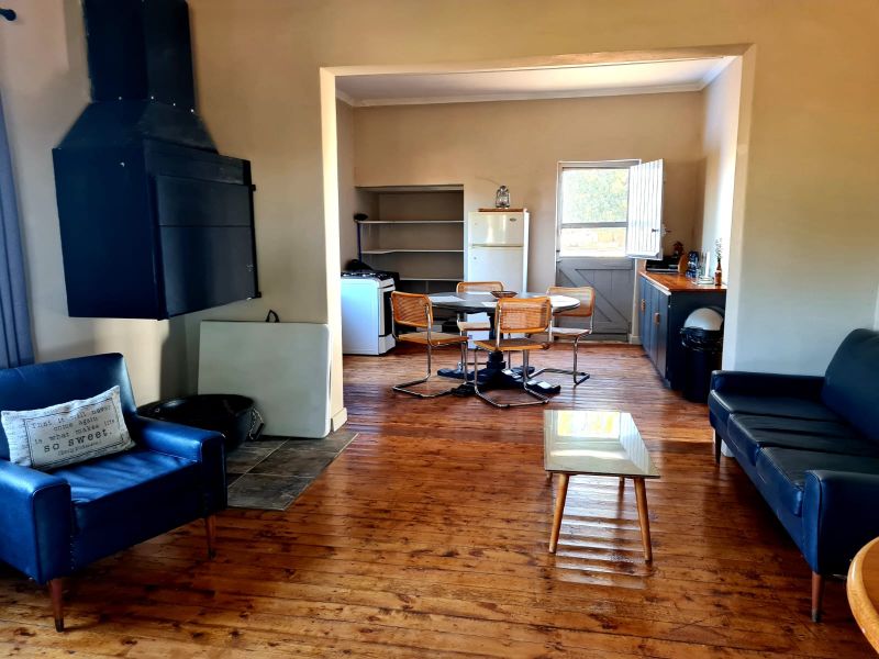 The farmhouse has two separate rooms, two and a half bathrooms, an outdoor shower, a living room with inside braai and a equipped kitchen with a gas fridge/freezer and gas over/stove.