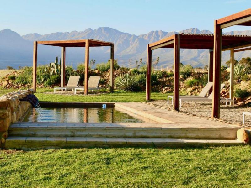 Outside, a private patio with a braai facility and wood fired hot tub provides a relaxing vantage point from which to enjoy the sunset over the mountains, take in the sounds of the prolific birdlife, or gaze at the canopy of stars.