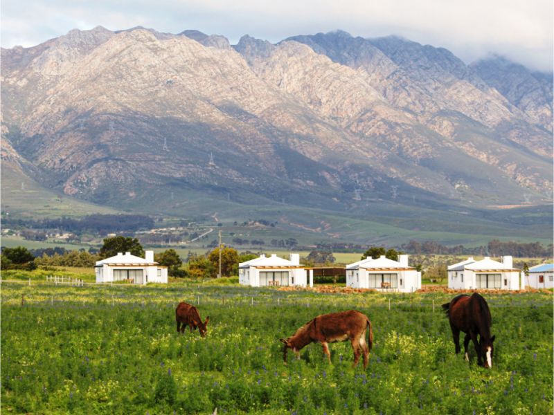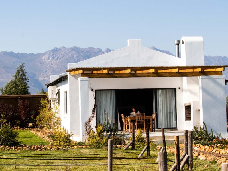 The luxury self-catering cottages showcase interiors that reflect a blend of rustic charm and modern sophistication, perfectly complimenting the old-world beauty of Tulbagh. Each cottage offers majestic mountain views and features a kitchenette, smart TV, complimentary Wi-Fi and an open-plan en-suite bathroom with a rain shower and large bathtub. Air conditioning, a remote-controlled fan, and a cosy outdoor fireplace ensure total comfort in hot summers and cold winters. A battery backup system ensures our cottages have light during load shedding and unexpected power outages.