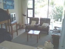 The lower unit is a family unit which sleeps 2 Adults + 2 children, with the main bedroom being an en-suite and bunk beds in the lounge. Fresh clean linen and towels are provided and there are built in cupboards for your convenience. The open plan kitchen is fully equipped with everything from a stove and oven to coffee cups. The lounge area leads out to a secluded balcony with braai area, which in turn takes you out into our Pool and courtyard area. This Unit can accommodate 3 adults, please enquire about price adjustments should you require this option. (Bunk Beds off Lounge)