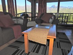 Main Bedroom and 2nd bedroom have panoramic views of the Southern Drakensberg. Main bedroom has en-suite bathroom with toilet, bath & shower. 2nd bedroom and loft bedroom share a bathroom with bath/shower and toilet
