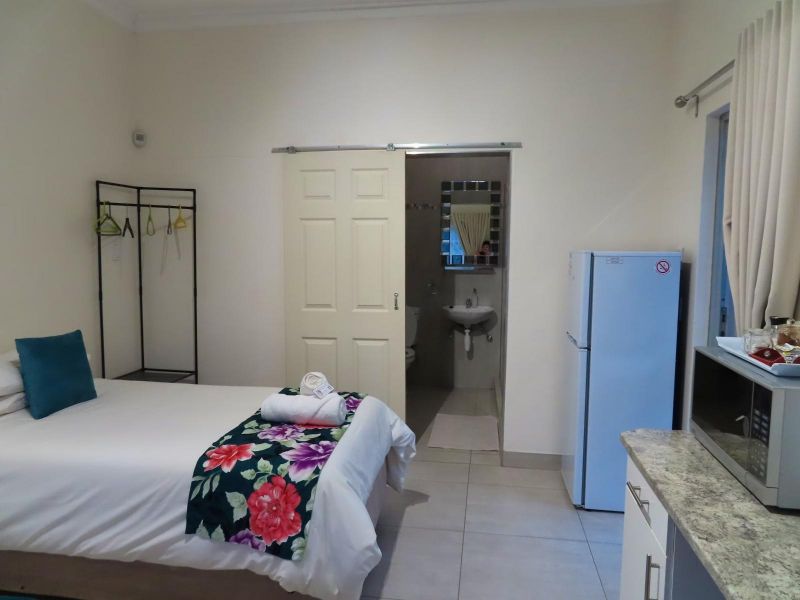 The room is perfect for one guest or a couple. It has two three-quarter beds and an en-suite shower. The room is air-conditioned and includes a TV with full DStv. The unit features a full kitchen, Wi-Fi, and a private patio with a built-in barbecue.