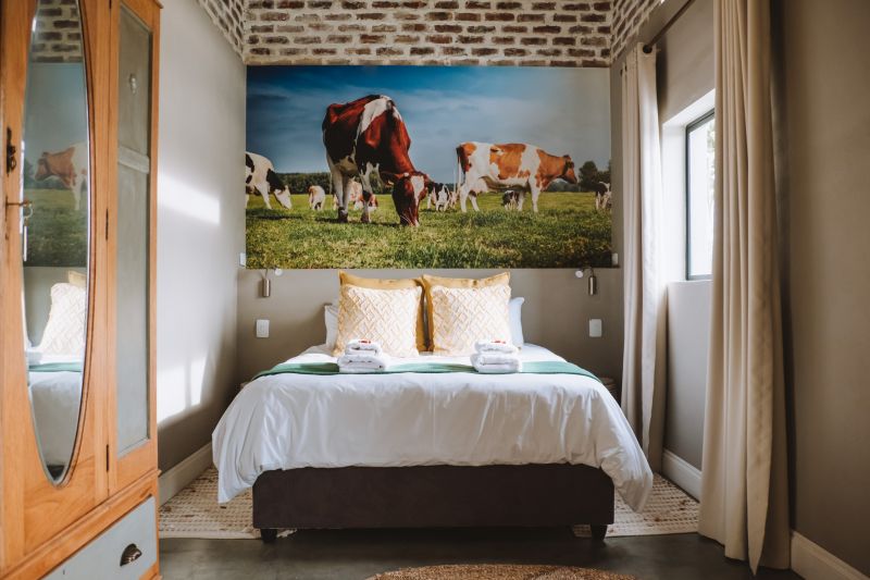 2 bedrooms with double beds and en-suite, open-plan bathrooms. One room (connecting to main bedroom) with bunk bed. Shorter than normal length - not for tall guests. Loft room with twin single beds - stairs leading from bunk bed room. Guest toilet. Well equipped kitchen with open-plan spacious lounge. Covered patio with braai area - outside seating for al fresco dining. Fire-pit in garden for bonfires and star-gazing. Dedicated parking areas next to cottage. Lovely views of the Outeniqua mountains and the farmlands. Tranquil surroundings with amazing sunrise and sunset views.