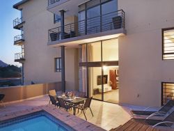 The lovely bright and airy apartment is in a safe and secure residential complex, and boasts open-plan living downstairs, leading onto a large patio with a private swimming pool and beautiful views. Conveniently located in Hout Bay with shops, café’s and restaurants nearby. The city centre is a 20min drive away, beaches are a 2min walk away, the Constantia winelands are a 10min drive away, and the Stellenbosch winelands are a 40min drive away. An underground garage is available, as is visitor’s parking. The kitchen is fitted with an oven and a microwave, as well as a kettle. A flat-screen TV is provided. Other facilities include a barbecue, sun loungers and an outdoor dining area.
