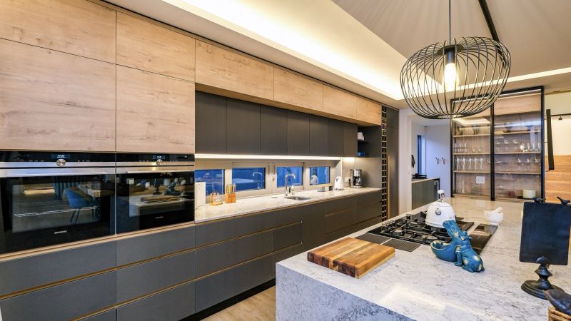 Kitchen – Fully equipped for self-catering purposes with all the mod cons including a duo oven, coffee maker, microwave, kettle and fridge/freezer built-in. Central island with gas stove top, wine cooler and bar chairs. Separate scullery with dishwasher, washing machine & tumble dryer plus additional fridge/freezer, ice maker and air fryer. Scullery door opens onto outside sheltered area with washing lines.