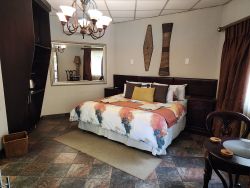 King Deluxe Room Accommodation for 2 people King Deluxe Rooms have a king size bed, an on-suite bathroom with a shower, aircon, a TV with OpenView, coffee / tea station, a safe and free Wi-fi. Breakfast: Charged additionally at R 75.00 per person, per meal if required. (2 Eggs, 2 rashers of bacon, chips, tomato and a slice of toast and an option of apple juice or orange juice or a cappuccino).