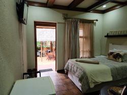 Double Room Accommodation for 2 people This room has a double bed, an on-suite bathroom with a shower, a TV with OpenView, coffee / tea station, a desk and free Wi-Fi. Breakfast: Charged additionally at R 75.00 per person, per meal if required. (2 Eggs, 2 rashers of bacon, chips, tomato and a slice of toast and an option of apple juice or orange juice or a cappuccino).
