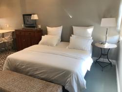 Extra length king size bed (or twin beds) with quality cotton linen and towels.