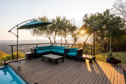 Nestling in the shadows of the Waterberg Mountains, near Thabizimbi, Humdani is located in a Malaria free area of North West Province ‘Big 5’. It takes only 2 hours to reach Humdani from Johannesburg and just over an hour from Pretoria, traveling via the national R 511 road. Humdani has earned a proud reputation as an exclusive but affordable luxury lodging establishment offering 7 tastefully appointed, air-conditioned / heated en-suite, African themed chalets. The rooms have private pergola covered patios and guests have a choice of either shower & bath, or shower only. Most rooms also feature a screened outdoor ‘bush shower’ for that exhilarating ‘Out of Africa’ experience!
