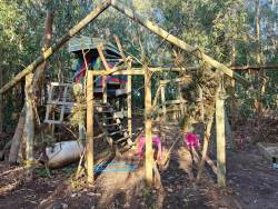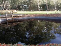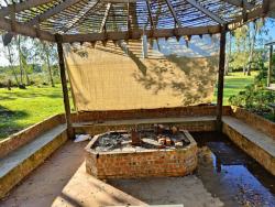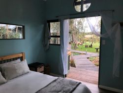 Inyoni Lodge welcomes you to relax and unwind at our peaceful self-catering forest cabin accommodation in the countryside near Wolvengat on Hebron Farm, which is a 3-hour drive from Cape Town, situated in the Western Cape`s Overberg District. At Inyoni Lodge Cabins there is a boma braai area and a children's jungle gym play area and a splash pond to cool off. The Lodge is ideal for small weddings, conferences, workshops, family gathering for birthdays or special celebration and retreats. Inyoni Lodge Cabins only have beds with bed side tables in the cabins. Electrical plug points, fully equipped kitchen and open plan lounge - dining room area is all in the communal Lodge and bathroom facilities is also communal with ladies separate to gents. At Inyoni Lodge Cabins there is a boma braai area and a children's jungle gym play area and a splash pond to cool off. The Lodge is ideal for small weddings, conferences, workshops, family gathering for birthdays or special celebration and retreats. Bird watching. Tree House and Owls Nest each have their own private braai area. In the village of Wolvengat there is "Lillywood Gallery" belonging to local artists Wim and Tina de Roubaix. North over The Hill is the historic Moravian Mission town of Elim. A little further afield lies Baardskeerdersbos, home to the renowned Baardskeerdersbos Art Route, and the many artists who live there. For those that don’t want to miss out on a rugby match, here you can visit the local pub and watch it on TV !!! The Haasvlakte, which is the area surrounding Wolvengat, in recent years has become a wine growing region....... And we now have the Elim Wine Tasting Route...participating farms are Strandveld Wines, Black Oyster Catcher, The Berrio and Zoetendal. A little further afield are Quoin Rock and Lomond Wines...see map. The whole area is a wonderful mountain biking territory and Black Oyster Catcher, has some great cycling routes through their farm and surroundings. The beautiful unspoilt beaches of Die Dam are a mere 12kms away and this is where the Ratel River (in our vleiland) meets the sea. Where ever you go in this area, keep your binoculars close at hand as you will see many birds and some wildlife. *Wine tasting in the area *Fishing at Rietfontien, Die Dam *Art route in Baardskeerdersbos *Shark Cage diving in Gansbaai *Mountain biking *Drive in the fynbos hills *Bird watching *Farm Animals