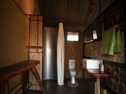 1 Honeymoon Double Room with side lamps, camping fridge, in-room bathroom, coffee/tea station, hot water generated by a solar power, offering a superb Eco-friendly personalised safari experience