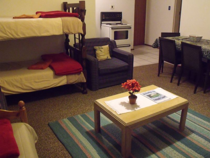 Our FAMILY Flats have a bedroom and lounge, with a double bed in the bedroom and 2 single beds in the lounge area, a kitchen and a bathroom with bath/ shower. Suitable for up to 4 persons.