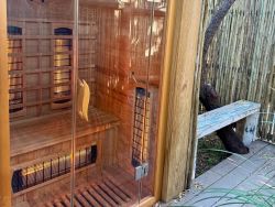 Kamala Karoo Sanctuary is a hidden oasis in the Klein Karoo along Route 62, nestled in the heart of Barrydale, Western Cape, South Africa. This serene Retreat envelops guests in tranquillity and natural beauty, inviting them to breathe deeper and connect with the quiet, sacred space of their hearts. Visitors to Kamala Karoo Sanctuary leave with a joyous spirit, refreshed and rejuvenated. The sanctuary offers a 5 bedroom main house, 2 sleeper garden units, and a cottage. It features a communal lounge, dining room, kitchen, library, and yoga studio equipped with fireplaces. The garden cottage and yoga studio also have air conditioning. All bathrooms include a handheld bidet shower next to the toilet. Each room boasts a unique colour palette and open wardrobes showcasing photographs of plants and nature scenes in and around Barrydale. Guests can indulge in luxurious Egyptian cotton (600 thread), French linen, and colourful Indian kanthas that invite them into dreamland. Rooms are equipped with ceiling fans, extra blankets, Indian kimonos, hairdryers, coffee/tea facilities, and USB ports. Bathrooms feature showers with eco-friendly products, washbasins, and toilets with hand-held bidet showers. Large sliding doors in each room offer beautiful garden views. The peaceful atmosphere and surrounding beauty create a serene interior that celebrates spirit, colour, and beauty. The exquisite garden, abundant birdlife, and deep silence of the land embrace visitors, inviting them to slow down, find stillness, and return to joy. The garden's meandering pathways encourage leisurely walks, unwinding, and connecting with nature, with plenty of spots to sit, rest, and watch the birdlife. The property is serviced during the week. During retreats, sumptuous vegetarian meals are served, with options for vegan and gluten-free diets. Guests staying independently can use the fully equipped kitchen to prepare their meals, have meals prepared by Kamala, or explore the many restaurants in town. For those hosting their own retreats, Kamala offers meal preparation services or the option to bring their own chef. Kamala Karoo Sanctuary is an ideal venue for hosting retreats, offering a magical setting perfect for private retreats, corporate wellness events, or simply quality time for rest, inspiration, and focused work. The health and well-being of guests are prioritized to ensure a thriving and enriching experience in the tranquillity of the Klein Karoo. Guests can walk the 11-circuit Mediaeval rose quartz labyrinth to release stress, process grief, and become more relaxed, calm, and peaceful. To walk a labyrinth is to walk a pilgrimage to your heart. It is a walking meditation that helps you to become present in the moment. Enjoy the outdoor infrared sauna, fabulous for detoxing, reducing inflammation or pain, and fighting chronic fatigue. There is an outdoor shower, or you can take a dip in the saltwater pool afterwards.