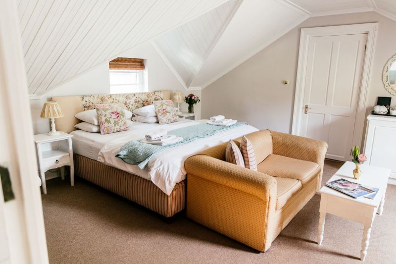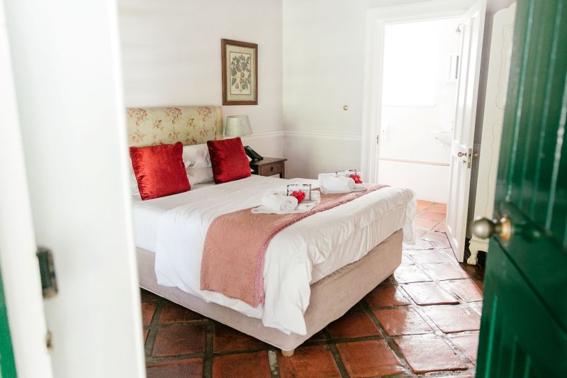 En suite (with shower) bedroom with standard Double bed; private entrance and stoep facing lawn and garden; tastefully decorated with free-standing furniture; tea trays; hairdryer; Satellite TV bouquet; underfloor heating; cool in summer