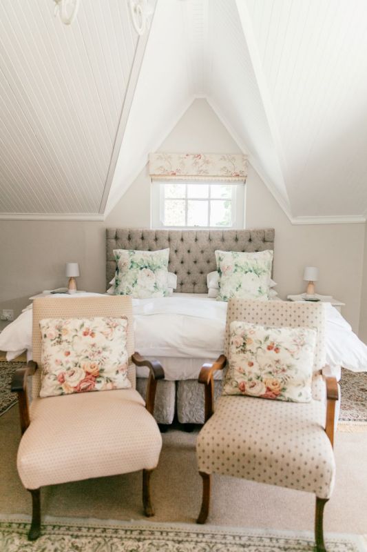 Tastefully furnished en suite bedroom (with shower) with TWIN beds; tea tray; hairdryer; Satellite TV bouquet; wi-fi access; private entrance and stoep facing the lawn and gardens