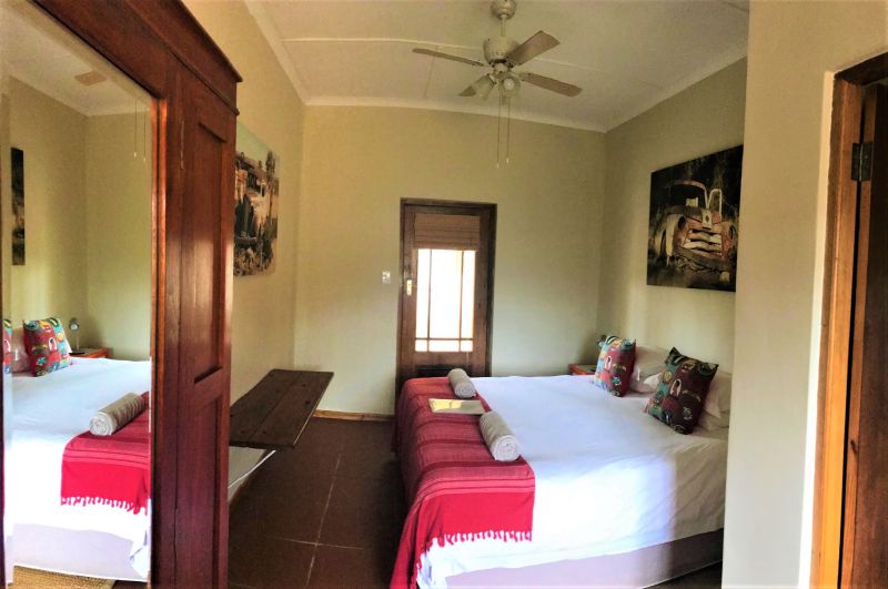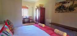 The accommodation comprises 4 en-suite rooms, each have separate entrances, Rooms 1, 2 and 3 are connected to a shared stoep which forms part of the main house. Of the 4 rooms, 3 have king beds that can also be converted into twin beds, and en-suite bathrooms with showers. Room 4 has a double bed and en-suite bathroom with a bath. A 5th room with a king size bed plus a single bed, and bathroom with en-suite bathroom with bath, is available for groups of more than 8.