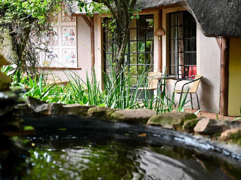 A beautiful tranquil garden is the perfect setting to enjoy the wondrous proliferation of African bird life! Our four thatch cottages which all have their own unique contemporary African ambiance, are situated in such a way that complete privacy is ensured. The cottages have their own patio, TV, tables / desks, fan/heater, alarm clock, fridge, microwave and coffee and tea making facilities.
