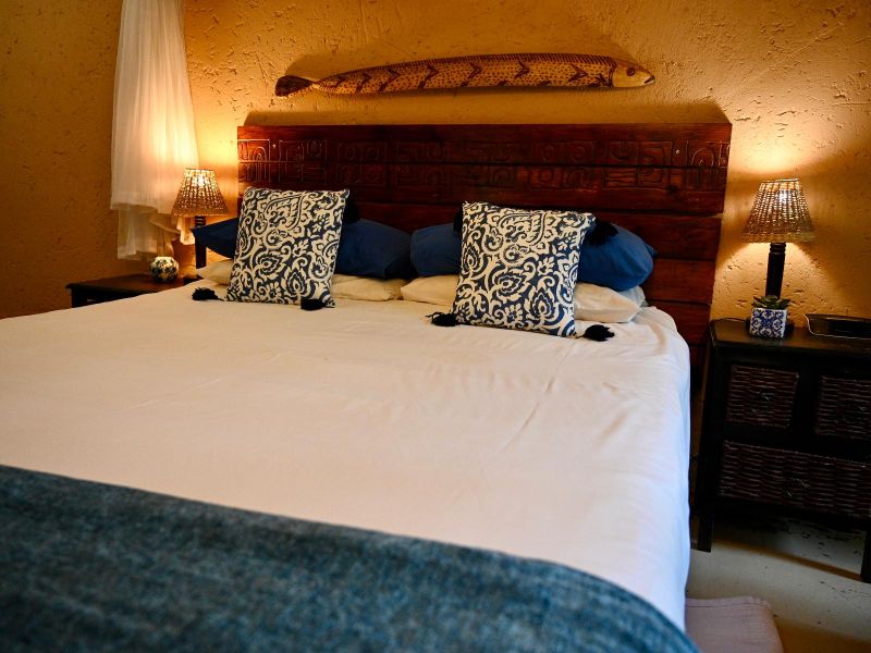 Thatch cottage with stunning African furnishings. Patio overlooks beautiful garden.En-suite bathroom with double basins & spacious shower. Fridge, microwave, coffee/tea facilities.Rates include continental breakfast. Special requests will be at extra cost