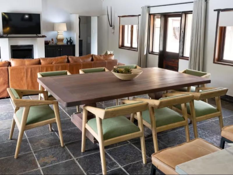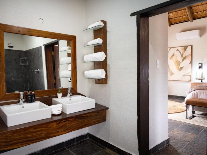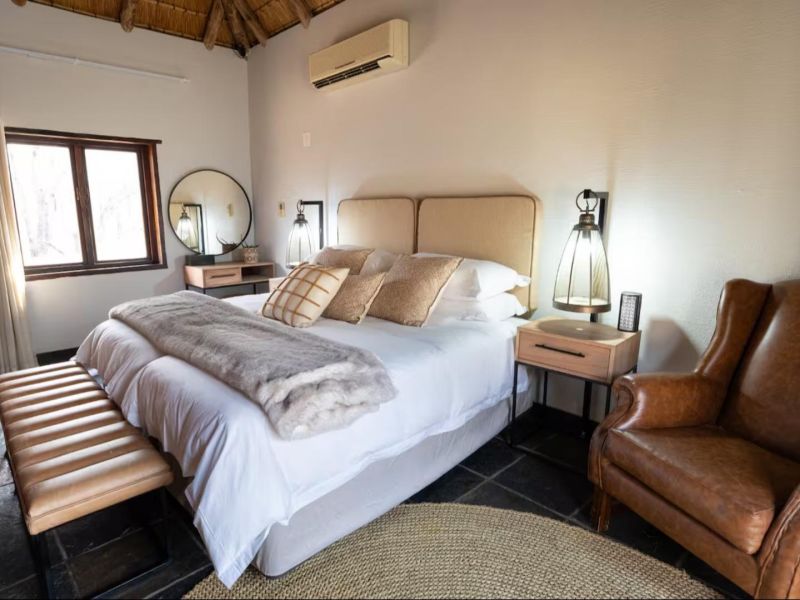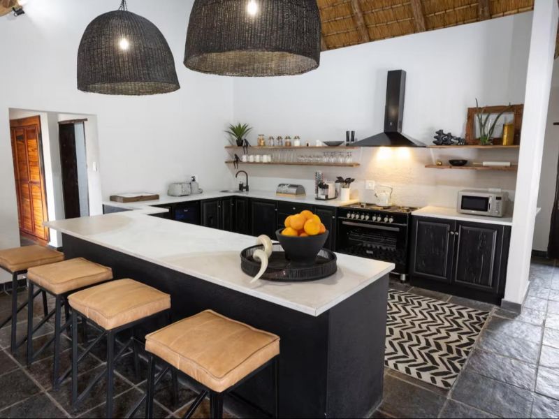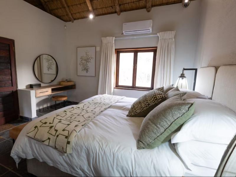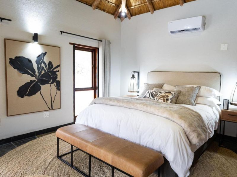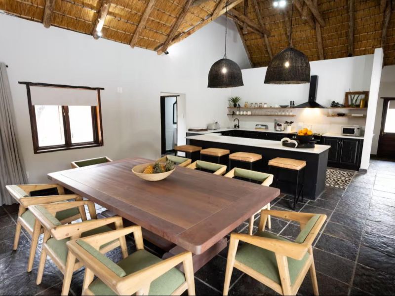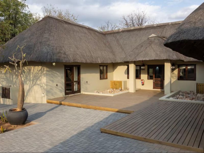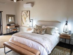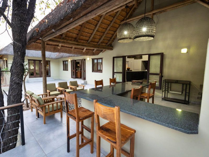 Escape to this 4-bedroom villa on Hans Merensky Golf Estate and Ba-Phalaborwa Golf Club, just 5 km from the Kruger Gate. Enjoy a private pool, firepit, outdoor bar, built-in braai, and a fully solar-powered setup, guaranteeing a worry-free, luxurious Bushveld stay with roaming animals at your doorstep. This self-catering villa is an ideal option for families, golfers, and bush lovers, perfectly situated within the Hans Merensky Golf Estate in Phalaborwa. The property comfortably accommodates up to 8 guests across four air-conditioned bedrooms, each featuring an en-suite bathroom. The first two bedrooms are furnished with a king-size bed and include a bath and shower, while the remaining two bedrooms contain two single beds and have showers. The open-plan living area includes a stylish, fully equipped kitchen with a gas stove, electric oven, microwave, and a fridge-freezer, complemented by a breakfast bar. A dining table allows guests to enjoy meals together, while the lounge offers comfortable seating, a fireplace, and a flat-screen TV with DStv and Netflix. Free Wi-Fi is available throughout the house. The villa provides seamless indoor-outdoor living, opening onto a covered front patio that features a lounging corner, a fully stocked bar with stools, and a built-in braai. This area is perfect for relaxing, enjoying sundowners, and admiring the surrounding Bushveld views. The outdoor space is further enhanced by a private pool and a firepit boma. For complete peace of mind, the villa runs on 100% solar and Eskom power, with a generator backup to ensure no loadshedding worries interrupt your holiday. You have full access to the entire house, placing golf, sunshine, and wildlife right at your doorstep. Game drives can be arranged at an extra cost