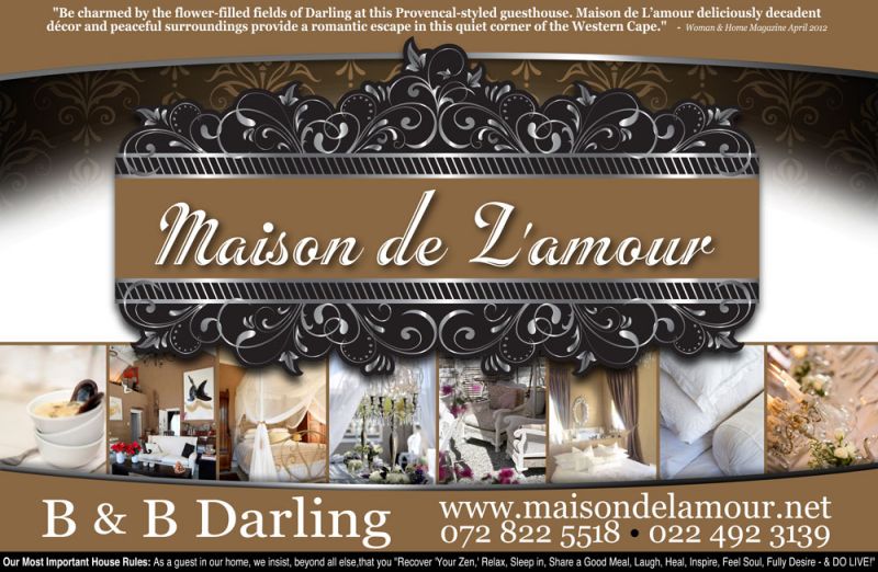 Maison de L’amour is located at 21 Mount Pleasant Street in Darling. The setting of Maison de L’amour is decorated in a French Provence country style and overlooks a garden which is picturesque and tranquil where our guests will have their breakfast and can unwind and feel completely relaxed.