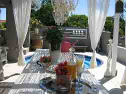 We also offer different dining experiences on some of the evenings of the week (depending on bookings) and our home-cooked dinners will prove to be popular with our guests for our take on the South African and European classics and the use of fresh seasonal ingredients. We offer three-course candle-lit dinners in the picturesque garden on Fridays and Saturdays, we also offer the use of our Braai area, plunge pool to the guests should they feel like catering for themselves or they could privately book us to prepare and cater for their personal needs at an extra charge per head.