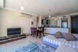 This spacious two-bedroom, two-bathroom, Century City apartment has 2 balconies. The first being the large balcony off the lounge area and the second is the smaller balcony that the 2 bedrooms share. 506 Manhattan Towers is situated on the banks of the Grand Canal in Century City and is within walking distance of the Canal Walk Shopping Centre and within 25 minutes’ drive from the City Centre.